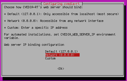 If you're installing in an automated way you can set the env CVEDIA_WEB_SERVER_IP to set which IP RT should listen to and CVEDIA_ACCEPT_EULA=1 to automatically accept EULA, skipping the interactive step.