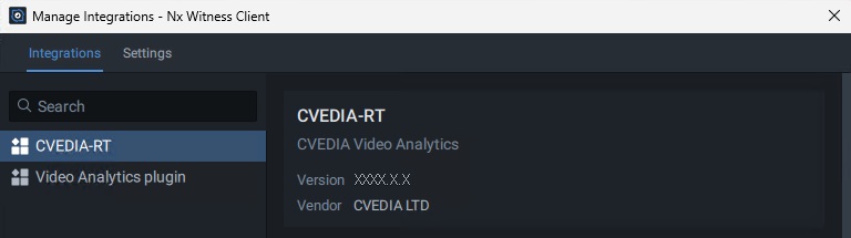 - Select the "Integrations" tile or navigate to the "Plugins" tab (for NX Witness versions prior to 6.1) and click on the plugin name on the left menu panel.